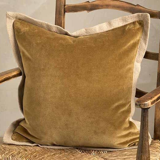 Velvet Flange Cushion In Cumin – A cotton velvet cushion with a cotton/linen reverse and flanged border.